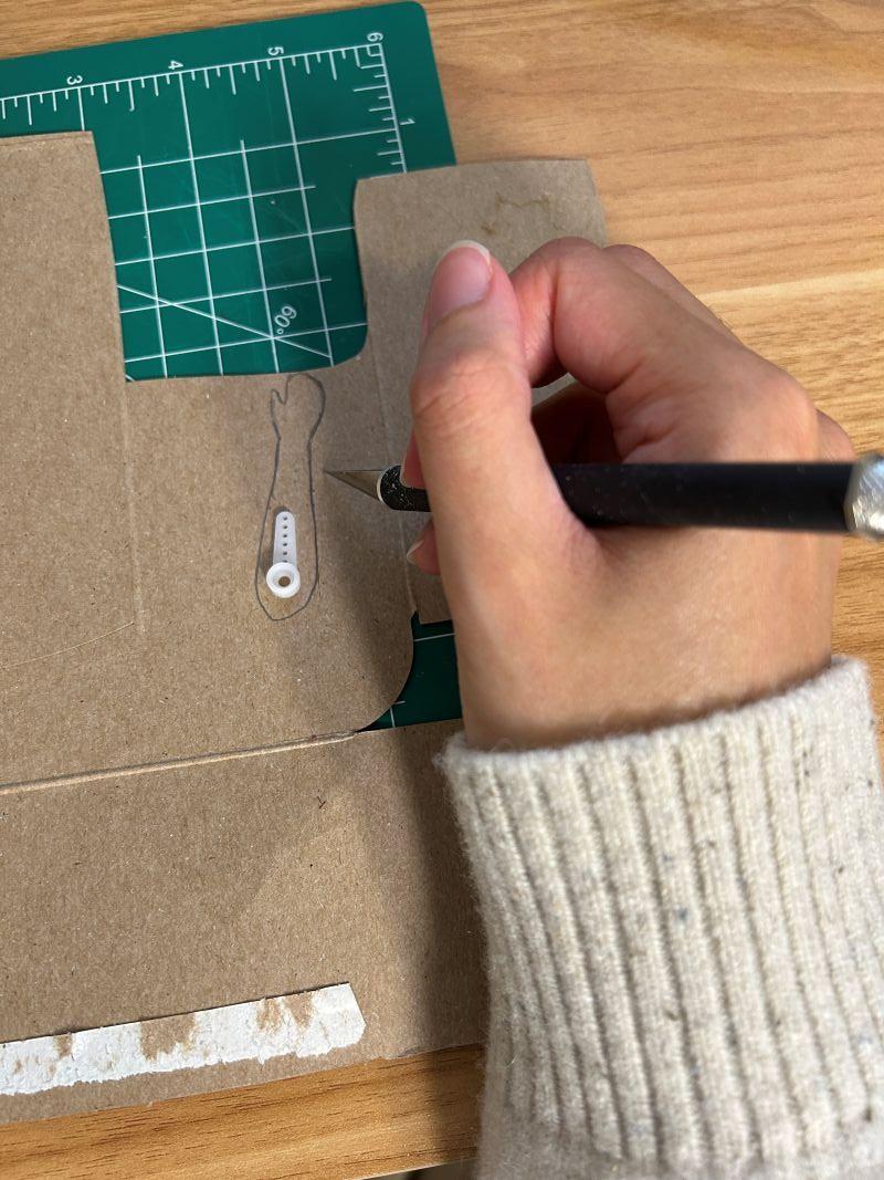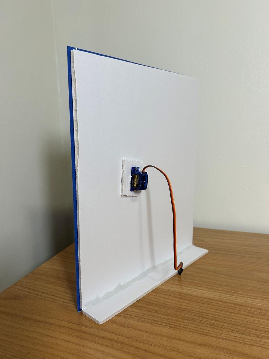 Attach the mobile paper arm to the fin on the spindle of the servo motor.